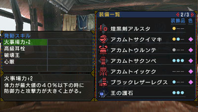 まぁ、火事場なんですがね‥‥(アカム装備‥‥ウゥゥ、ダサス)
