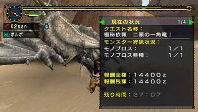 自分もドスでひたすら野良ってますょwあんだけ苦労したラージャンペットが今でゎ三匹に・・・(意味ないし闘技もやりませんがね)