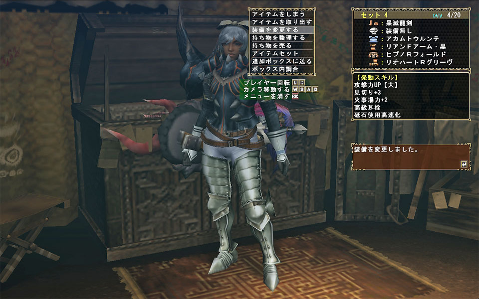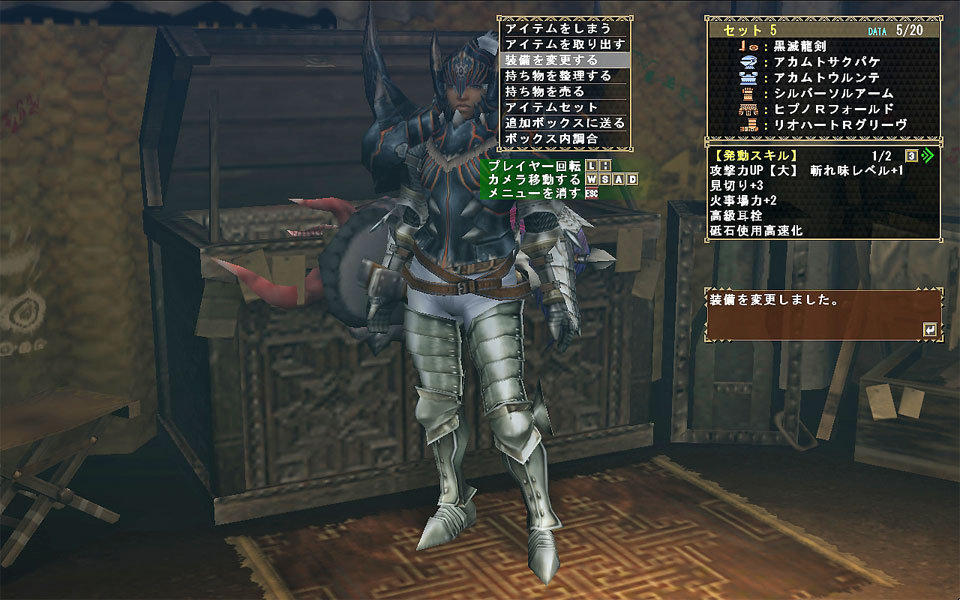 スキル:SP珠スキル・攻撃力UP【大】・見切り+3・火事場力+2・砥石使用高速化・高級耳栓