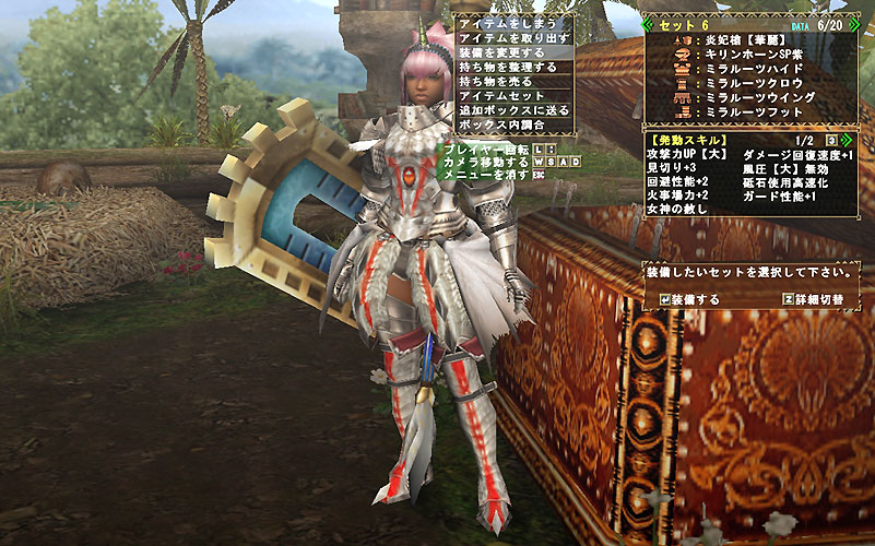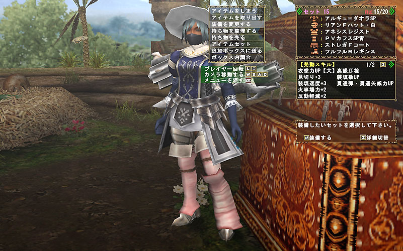 ○発動スキル:剛力3点・高耳・砥高速・風圧【大】無効・ガード性能+1・砲術師・体力回復アイテム強化・女神の赦し