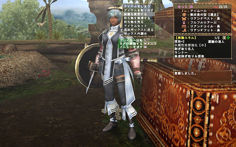 ○発動スキル:剥ぎ取り名人・高速剥ぎ取り&採取・採取+2・運搬の達人・ランナー・氷属性攻撃強化【小】