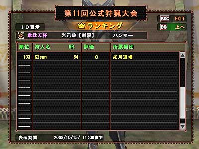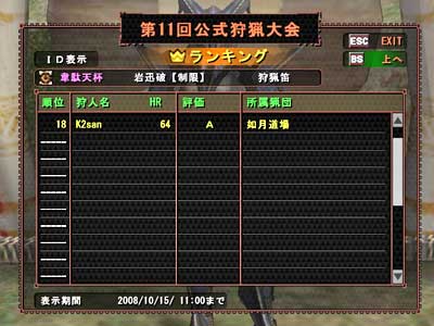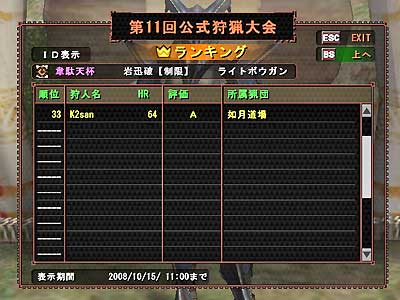 すばらしいのう、けつさん!全武器まんべんなく使えるってのは状況に応じた使い分けができるってことだもんな。うらやましい限りだ。次回もお互いがんばりまっしょい!